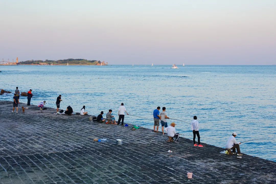 青岛,众多钓鱼爱好者在海边垂钓/视觉中国此外,钓鱼也成为了年轻人之间的社交货币。群里的年轻人基本上都热衷于野钓,野钓的好处就在于成本低、风景好,不仅能休闲娱乐,还能促进彼此的交流。