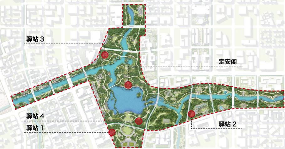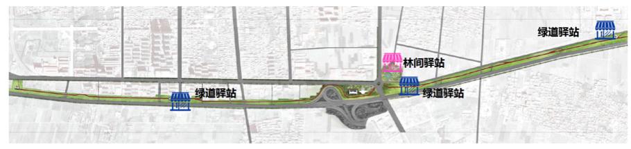 容东片区截洪渠景观一期配套公共空间主要为驿站,包括3个绿道驿站和1个林间驿站,绿道驿站每座可利用面积约56平方米,林间驿站可利用面积约110平方米。