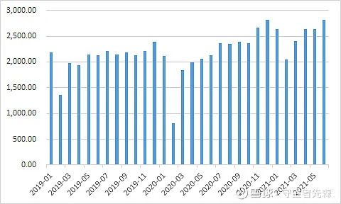 下图为国家统计局公布的当月月出口金额(亿美元),可以看到除了2020年2月疫情突然来袭,数值快速回落,其他时间我国的出口保持了非常强劲的韧性。