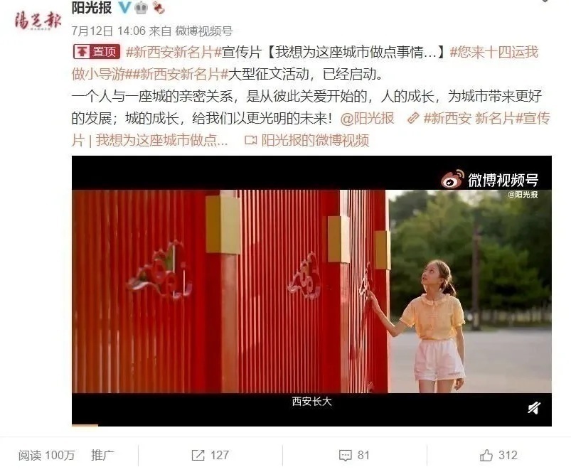 昨天,由阳光报社拍摄的“新西安新名片”宣传片在新浪微博浏览量已过百万,我们将继续努力,将活动推向深入,也请老师、家长协同孩子们一起加油吧!少年君特别提醒大家:导游词不带写得太过洋洋洒洒刹不住闸,按照字数要求600字以内。