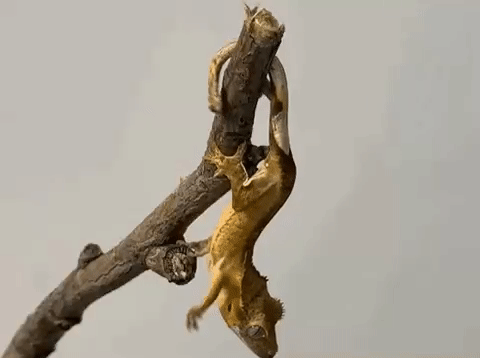 倒挂金钟的睫角守宫 | Twitter @tony_gamble1睫角守宫(Correlophus ciliatus)就是掌握这门“武林”绝学的一员。2021年6月,来自美国马凯特大学(Marquette University)的托尼·甘布勒教授(Tony Gamble)带领团队发表在《皇家学会报告B》上的一项研究,为我们揭开了睫角守宫倒挂金钟的秘密。