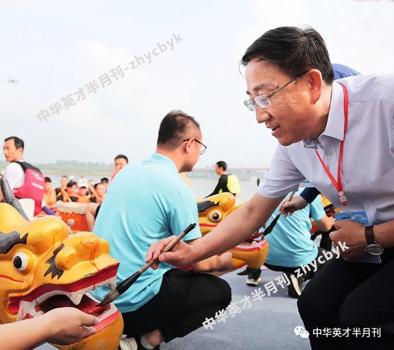 众领导为龙舟进行点睛祈福开幕式上精彩纷呈,其中最扣人心弦的环节是举行“点睛仪式”。顾名思义,点睛仪式是由出席开幕式的主要领导为参赛龙舟开慧眼,祈祷当地风调雨顺,政通人和,百姓平安吉祥。伴随着毛笔的起落,就连江对岸的大佛寺都回荡着这样的祈福:一点眼睛,风调雨顺,国泰民安;二点天庭,吉星高照,鸿运当头;三点鼻子,和谐幸福,万家平安;四点口利,笑口常开,大吉大利;五点龙角,祝愿潼南龙腾虎跃,蒸蒸日上!