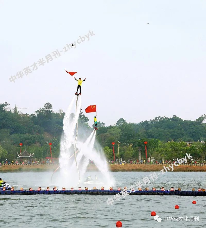 四位特技演员进行“水上飞人”表演说到城市名片、体旅结合的发展思路,自然绕不开城市旅游发展的总体战略部署和战略定位。为此,本刊记者拜访了本届活动的另一承办方单位重庆市潼南区文旅委,结合龙舟赛活动的总体指导思想和总部署,唐凡云主任和蒋豪渊副主任对潼南区体旅融合发展做了深度阐述。