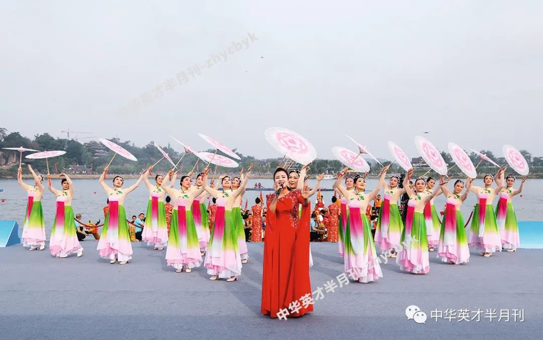 开幕式上的舞狮表演,顽皮的狮子到主席台前热情互动赛场内,运动员们挥汗如雨,公平竞争;赛场外,各种文化样式竞相登台,争奇斗艳。来自重庆市歌舞团的专业演员们将精心打造的舞剧《杜甫》片段《丽人行——双面燕洵》带到了现场,该舞剧不仅以其原创性和超强的艺术感染力摘得荷花奖,也以其古典的气韵、时尚的表达令本届龙舟赛的文化氛围变得更浓了。年轻小伙子们以其矫健的身姿演绎了一场舞龙舞狮表演。四名运动员联手上演了一场集观赏性与竞技性于一身的“水上飞人”特技表演,表演中,运动员借助喷水器升空,完成翻滚、跳跃、旋转等系列高难度动作,从容地在蛟龙和飞燕的角色间切换,将现场的情绪再一次推向高潮。