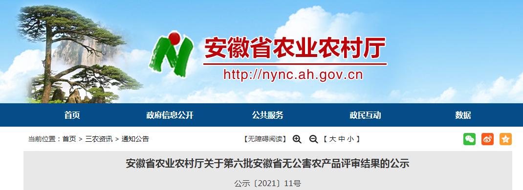 7月14日,省农业农村厅发布《关于第六批安徽省无公害农产品评审结果的公示》。