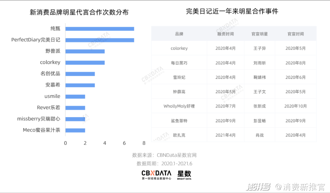 从品牌自身来说,获得融资成为新消费品牌寻找明星合作的一大机会点。一些投资人曾表示,未来5-10年将是新消费品牌的黄金红利期。从2020年开始,就有不少投资机构把目光转向新消费赛道。
