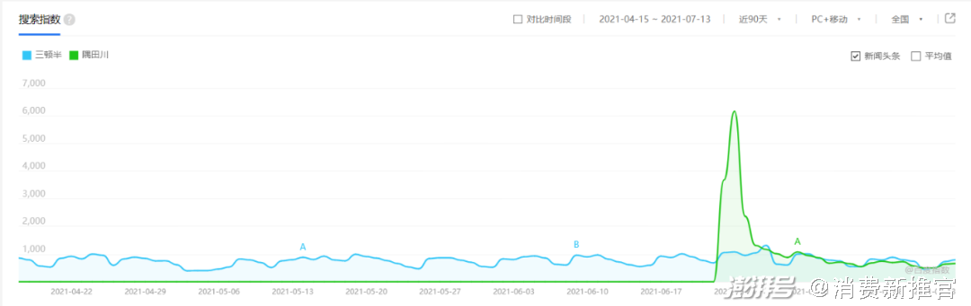 2021年6月,隅田川在明星营销上率先发力,官宣顶流肖战为全球品牌代言人。除了将广告宣传遍布四城地铁、十三城户外LED,还买下了纽约、伦敦、东京、曼谷等国外城市的大屏进行宣传。同时配合杭州亚运会官方咖啡独家供应商的商业动作叠加宣传,隅田川首先在声量上取得了前所未有的突破。百度指数与微信指数显示,知名度明显低于三顿半的隅田川在官宣代言后强势反超。