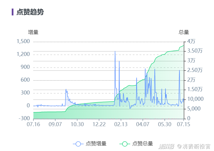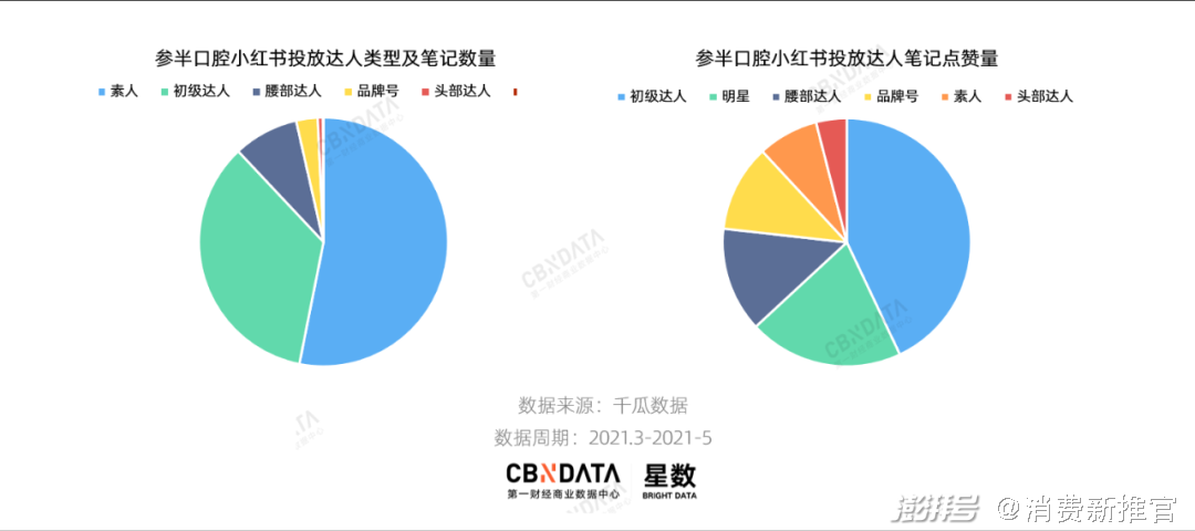 图片来源:小红书以官宣赵露思为代言人的前后三个月为时间周期,星数发现参半达人投放的布局中“素人+初级达人”的阵容高达80%,明星发布的笔记只有一条,但点赞量却轻松超过素人及腰部达人。在官宣代言人后,品牌整体相关的笔记点赞量也较之前呈大幅上升趋势,且在一个月内都保持着高点赞水平。