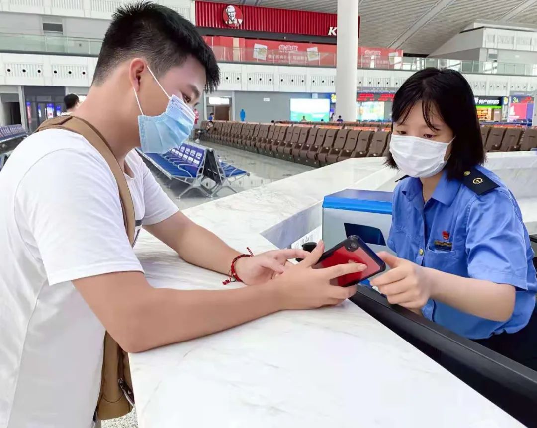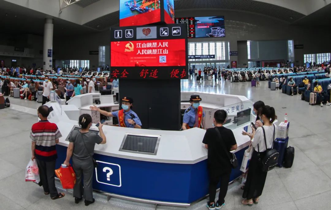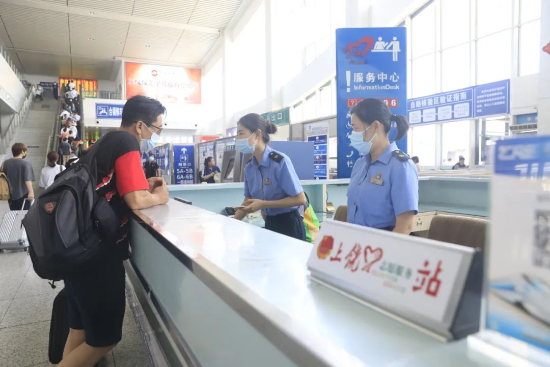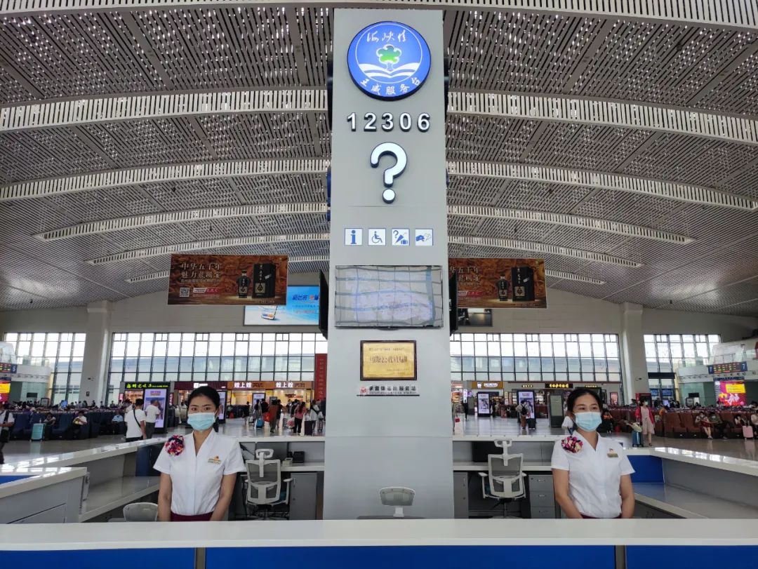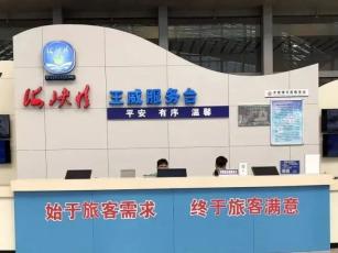 上饶“赣饶情”站服务台为来往旅客提供咨询、重点旅客接待、失物招领和车票改签等服务。