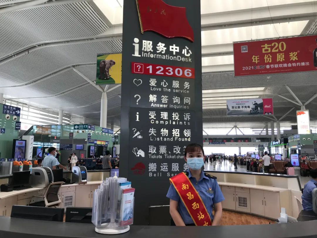 南昌西站“红土情”服务台为旅客的出行提供便利服务,解答旅客问询,提供针线、信封、免费急救药品、轮椅等,帮助重点旅客开通进站绿色通道。
