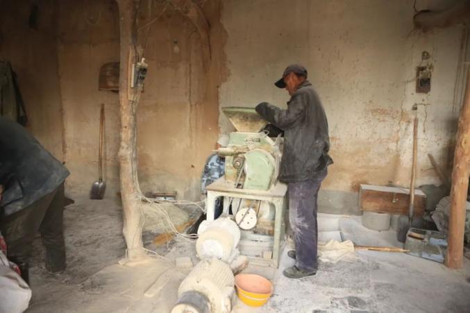 加工荞面。陈文俊摄单从外观看,荞麦粒看上去像一个个的三角,力挺饱满,圆润光泽,经机器加工,有的变成荞麦糁子,有的成了白中带黑的荞麦面粉,无论是荞麦糁子还是荞麦面粉,都是当地做碗托的好原料,这让沙圪堵成了准格尔旗享誉盛名的碗托之乡。