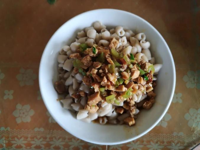 浇臊汤的荞面圪托。陈文俊摄荞麦作为一种杂粮,在沙圪堵的农业里占据着举足轻重的作用,而当地人通过发挥他们的聪明才智,把它转化为枕头、褥子等畅销的床上用品,转化为碗托、面食等一道道纯正的美食,这转化的智慧经岁月的沉淀已变得熠熠生辉。而它的物用价值和食用价值随着时代的变迁依然会不断传承与发展,这既是当地人家乡情结所在,更是在乡音缭绕中讲述着他们日常生活的历史。