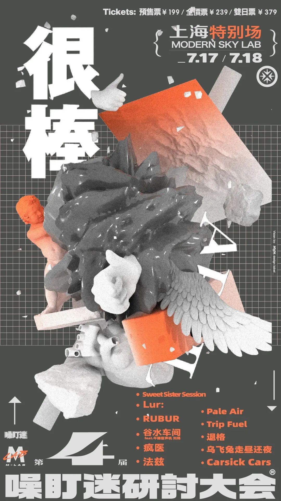 「噪盯迷」即噪音摇滚、盯鞋摇滚、迷幻摇滚等音乐类型的简称。第四届「噪盯迷」研讨大会上海特别场「很棒」,将出现在上海ModernSky Lab。这一次将会有国内后朋中坚力量疯医乐队,来自西安古城的后朋克乐队法兹FAZI,拥有太空迷幻和噪音的Sweet Sister Session,三个年轻女孩的组合谷水车间……