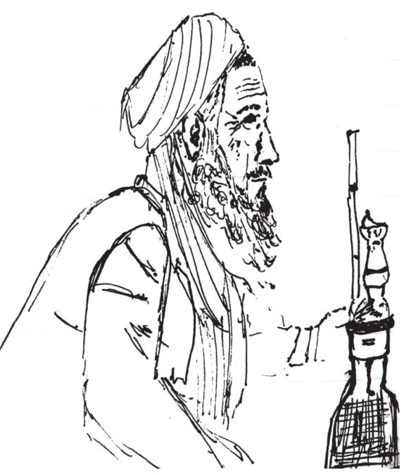 罗瑞和卡西姆一行人走进村庄,看到三个年老的男人和他们的孙子们坐在清真寺旁边的平台上。一个白色胡须的男人满面笑容地走上前来。