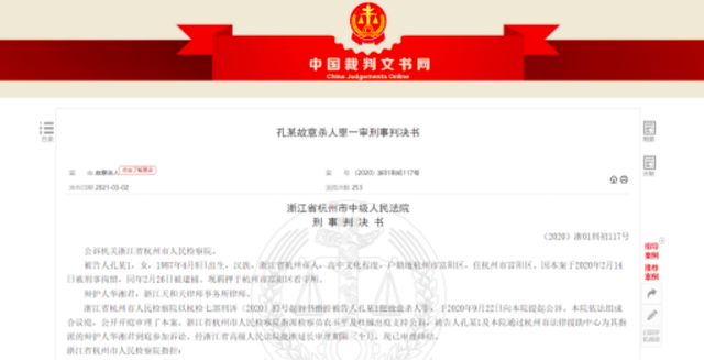 日前,武汉晨报记者在中国裁判文书网获取浙江省杭州市中级人民法院发布的一则刑事判决书。