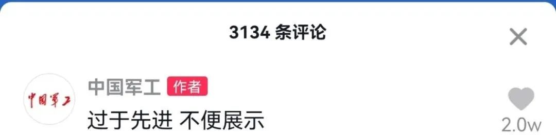 对此,“中国军工”在评论区称:“过于先进 不便展示”。