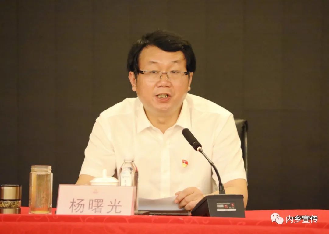 全县领导干部会议现场7月17日,内乡县召开全县领导干部会议,宣布省市委决定:杨曙光同志任中共内乡县委书记,免去内乡县人民政府县长职务;免去李长江同志中共内乡县委书记、常委、委员职务。张智广同志任中共内乡县委委员、常委、副书记,提名其为内乡县人民政府县长候选人。市委组织部副部长、一级调研员朱艳红出席会议并讲话。