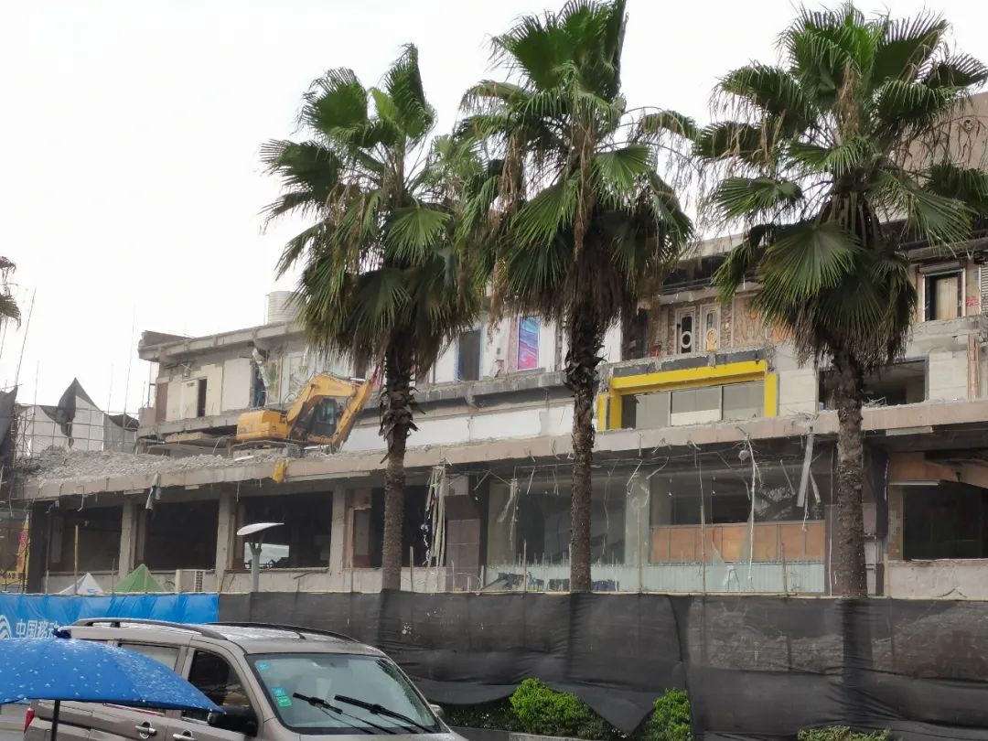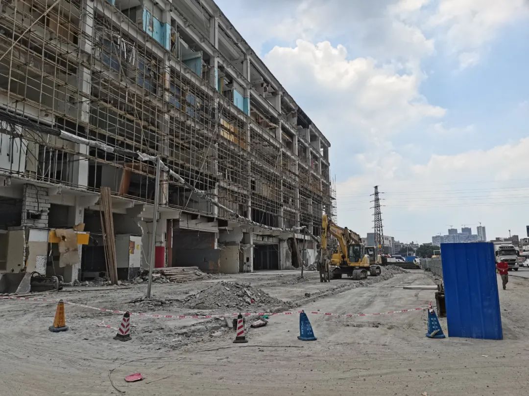 这边其实很萧条,很多铺面没招牌,有招牌的也没有开门迎客,直播带货并没有让这个行业整体繁荣起来,线下萧条,能转型的公司毕竟是少数。逛完这里,我们又去了马路对面的纺织城,这里到处在拆迁,脚手架密集得像蜘蛛网。