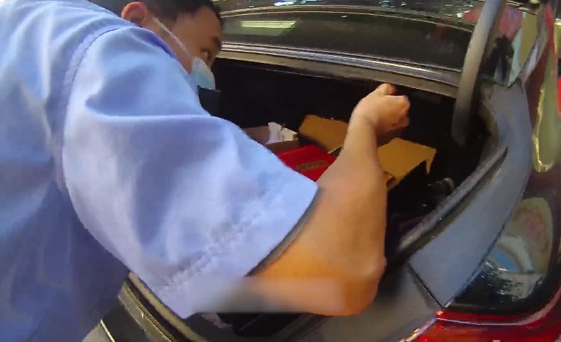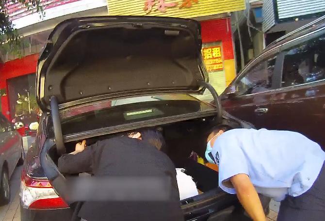 5分钟左右后治安队员顺利撬开车尾箱