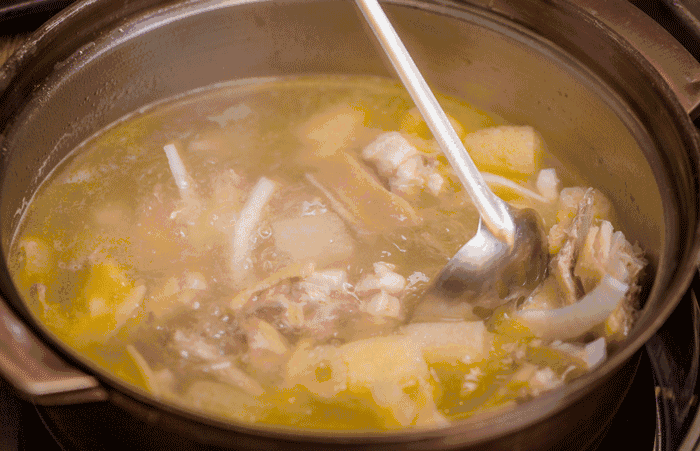 椰子鸡汤讲究的就是原汁原味,将新鲜的椰汁倒入汤锅中加入鸡肉,熬制后,立即变得清香扑鼻。然后再加入甜甜的椰肉、牛肉、青菜、豆腐等配菜,最后蘸着调料吃,清爽不腻,而且还很开胃。