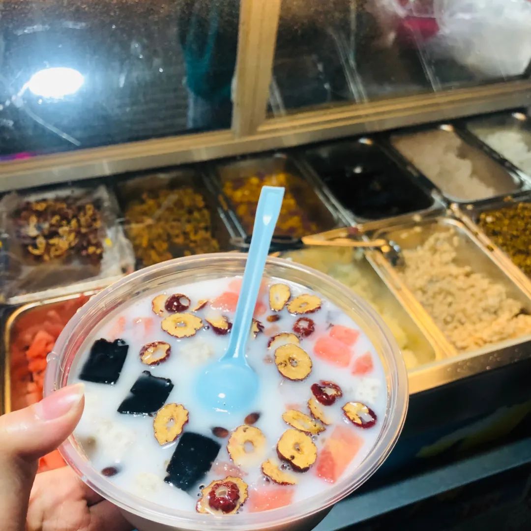 这个夜市中的小吃绝对让人眼花缭乱,人群川流不息,很有烟火气。在这里也能寻觅到性价比逆天的当地小吃,像正宗的海南糖水,几块钱一碗,7、8种口味随意挑选。