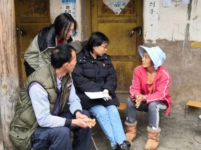 2021年2月9日,张桂梅(右二)在家访时与学生家长交谈。新华社发(王秀丽摄)张桂梅说,华坪女高的学生大多来自山区,家庭条件普遍较差。“高三是高考冲刺关键期,我只有家访才能充分了解、帮助解决她们家庭的困难,让她们没有后顾之忧专心学习。”