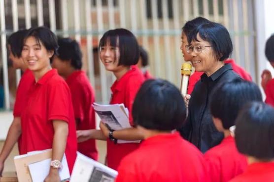 华坪女高每周有一堂全校的思政课,学生们坐在院子里,由张桂梅统一组织学习。她会给学生讲革命先烈的事迹,带着学生读党章,有时还会讲起创办女高的艰辛经历。