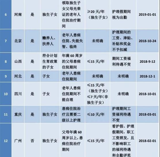 据悉,福建、广西、海南、湖北、黑龙江、淮安、广州、重庆、四川、河北、山西、北京、河南、宁夏、内蒙古、云南、西安、南京等多地出台了“独生子女护理假”相关的具体规定。