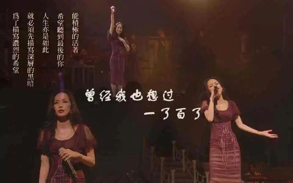 ©️网络依旧是画着标志性的暗色眼影,身着一席红裙的她,靠跺脚打节拍,靠摸音响确认节奏,声嘶力竭地演唱了这首《曾经我也想过一了百了》。