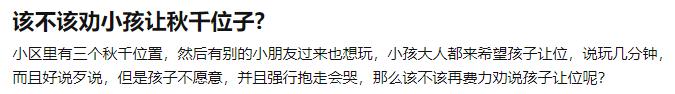 对于“该不该劝小孩让秋千位子”这个话题,你有什么看法?