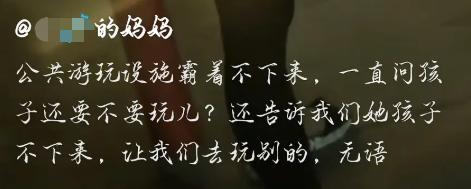 第二天,这位妈妈来回复了:我接受网友建议,今天特意占位了,我就不下来了,想玩多久玩多久。(看到这样的做法,我隔着屏幕都替她感到尴尬!)