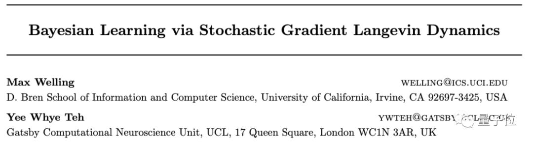 作者分别是高通荷兰公司技术副总裁Max Welling、牛津大学教授Yee Whye Teh(郑宇怀),后者曾经是Hinton的学生。论文主要介绍了一种基于大规模数据集的贝叶斯学习方法,并将之应用于高斯混合模型、逻辑回归模型和自然梯度的ICA模型。