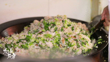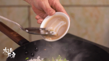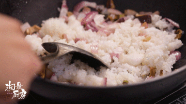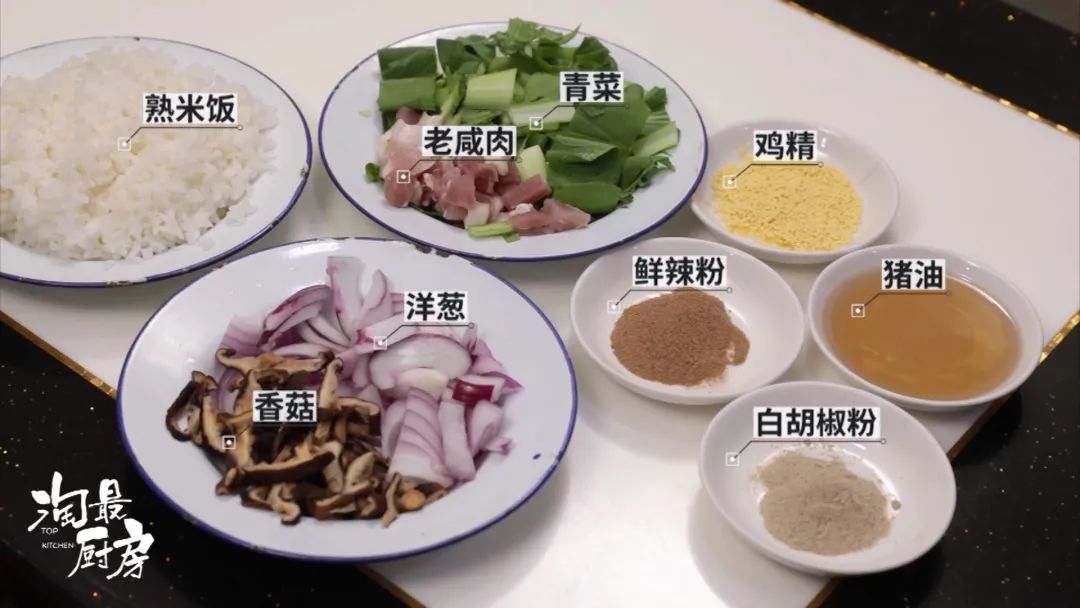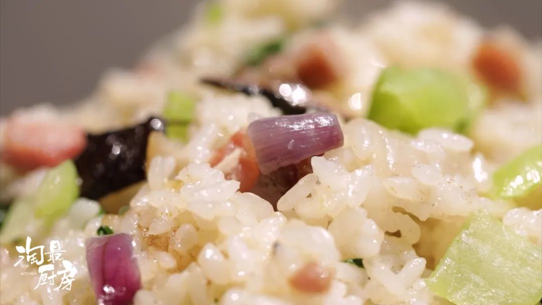 还没完,老板娘另私藏了一个小秘籍,就是在煸炒时加了2味食材。可别小看这2味食材,它们不仅能够增香增鲜,还会让菜饭的色泽更晶莹饱满~(具体是哪2味食材,答案后面会揭晓~)