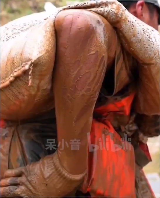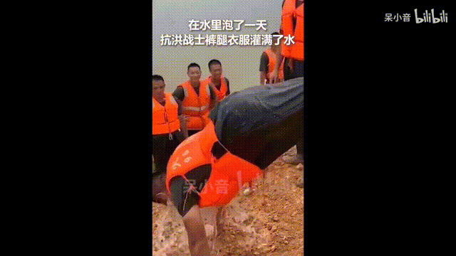 在水中泡了一天的战士们裤腿衣服已经灌满了水