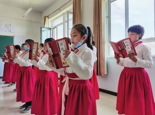 新和县丽水小学的学生正在进行《道德经》朗诵。记者沈贞海/摄一个活动、一年时间: