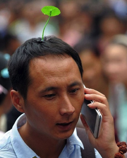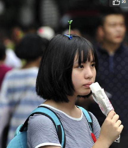 英国的《每日邮报》近期报道了中国很多地方都在玩一种“豆芽花”的发卡。该报道称,这款新奇发饰老少通吃,有近百种不同设计,其中不少都是塑料花,远看像从头顶上发芽长出的植物,近看更像天线。