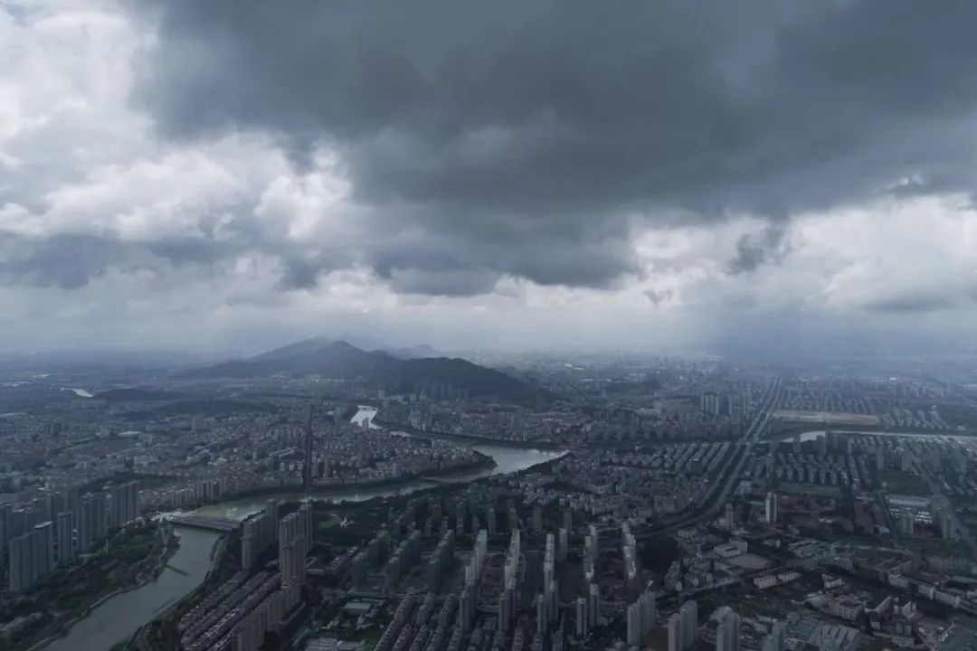 黑云压境!今天下午的诸暨城区航拍图 融媒体记者 蒋力奔 摄由于台风路径仍有较大不确定性,市气象局将密切监视,请及时关注我市发布的最新气象信息。