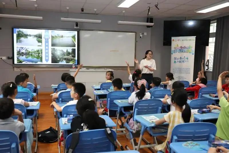 环保课由上海市区两级水务海洋行业青年志愿者通过现场讲解、互动问答、小游戏等方式,向小学生们普及长江大保护、上海市河道水环境现状、河长制、河湖保护等知识,引导青少年从小做起,从身边做起,加入到珍惜水资源、保护水环境的队伍中来,营造全社会共同参与治水护水的良好氛围。