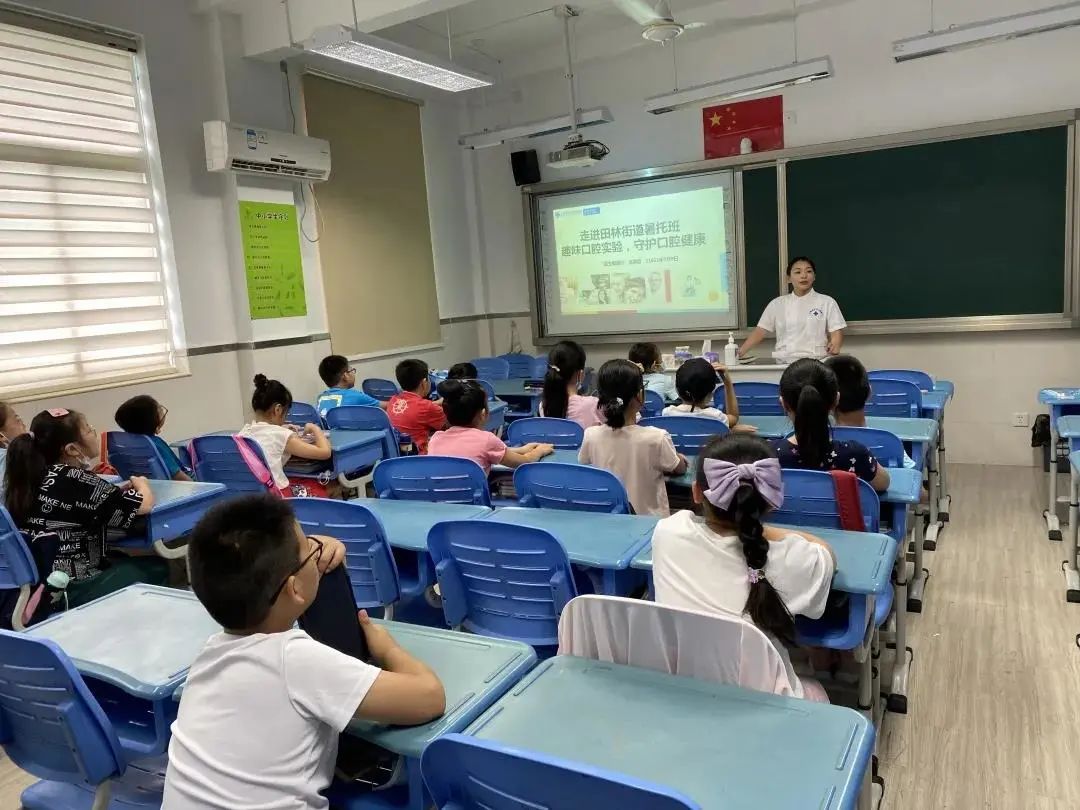 为进一步丰富田林街道爱心暑托班的课程内容,让同学们接触到更有趣的科学护牙知识,增强儿童“保护牙齿,从小做起”的意识,7月8日上午,上海蓝生万众医院医务青年志愿者走进田林小学爱心暑托班,为同学们带来了一堂趣味横生的“口腔科学实验课”,通过口腔实验的方式传递口腔健康科普,同学们收获满满。