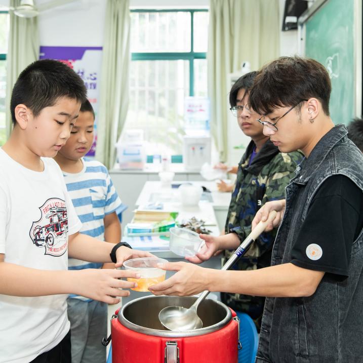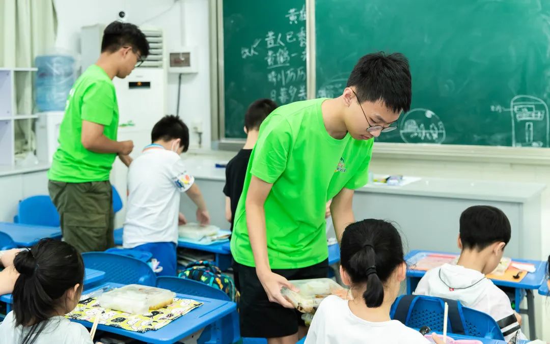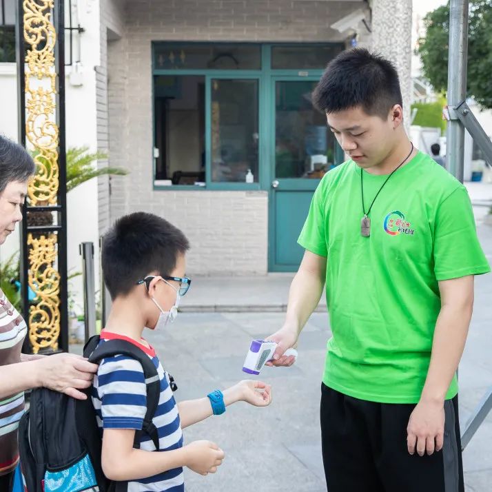 用爱守护,共同成长爱心暑托班中处处可见一抹抹靓丽的绿色身影活跃其中——那是我们的志愿者们。志愿者既有来自于中国中学的高中志愿者,也有来自上海师范大学等高校大学志愿者。无论是早晚接送签到、两次体温测量,还是午间搬饭盛汤、课堂纪律维持,都少不了志愿者的身影,要感谢他们的付出。