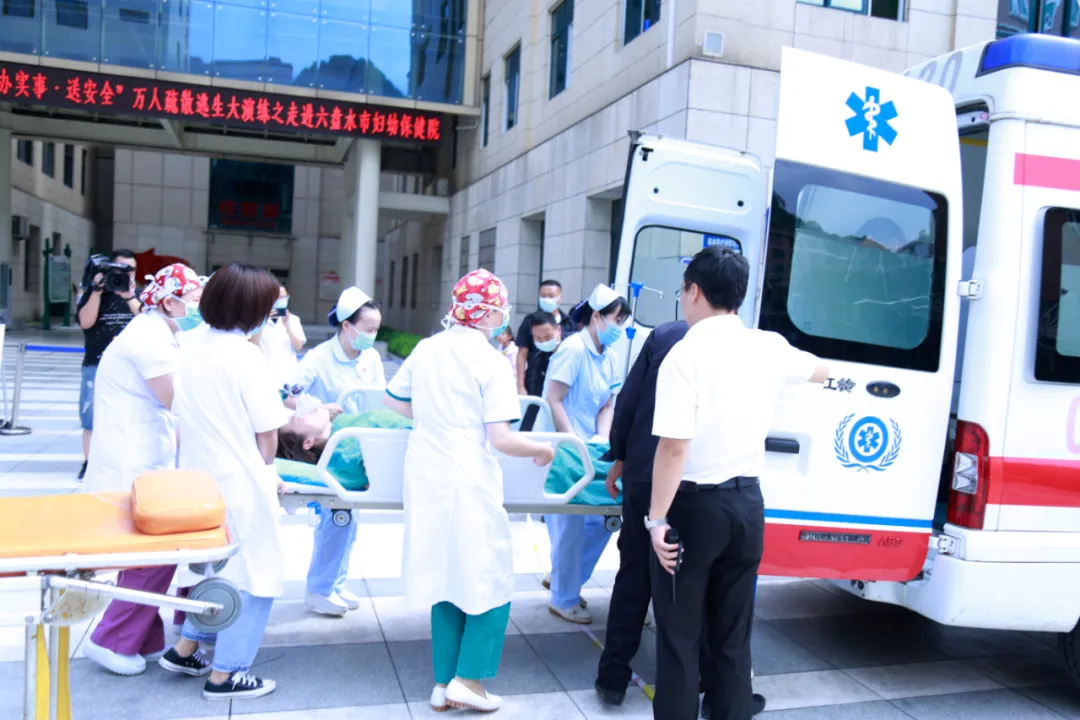 随着警报响起,医护人员迅速集合患者,引导并搀扶患者沿疏散通道安全有序撤离,利用担架、轮椅等将行动不便的患者转移至安全地带。整个演练过程快速有序、配合流畅。