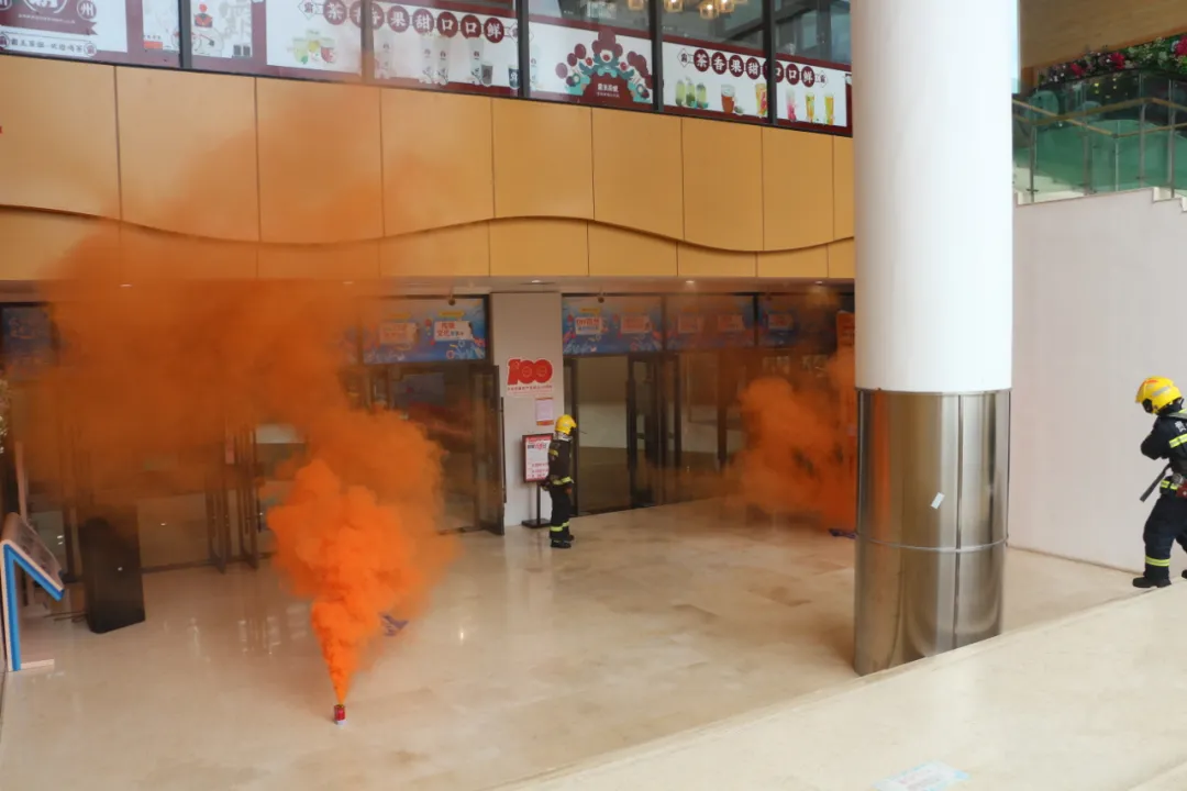 模拟盘州市恒立大世界购物中心内一商铺发生火灾,火势迅速蔓延,火情发生后,工作人员第一时间拨打119电话报警,并立即启动应急预案,微型消防站队员迅速组织员工和顾客沿就近疏散通道和安全出口疏散逃生,同时利用消火栓、灭火器开展初起火灾扑救。