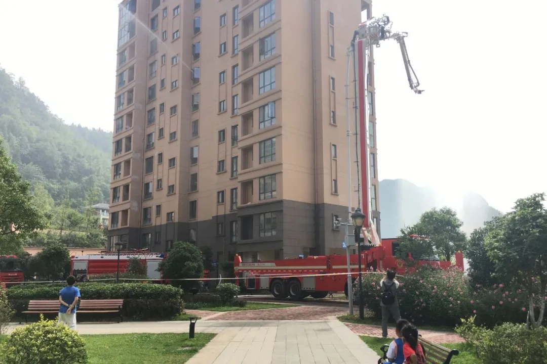 发现火情后,小区物业立马拉响警铃报警,并及时疏散小区住户。水城区消防救援大队接警后迅速赶到现场,消防员进入火场搜救被困人员、举高喷射消防车立即展开作业,扑灭火情。整个演练各环节有效衔接,过程紧张有序,达到了预期效果。