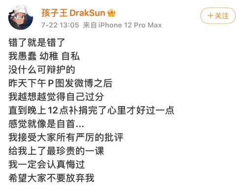 说唱歌手“孩子王DarkSun”微博道歉的确,孩子王要对自己的无脑行为付出代价。
