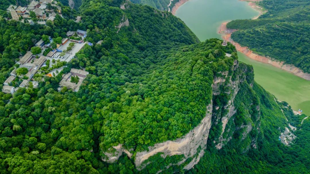 关山林海,山势险峻,号称四台十六峰;下临竹林寺水库,平湖如镜,清爽宜人。
