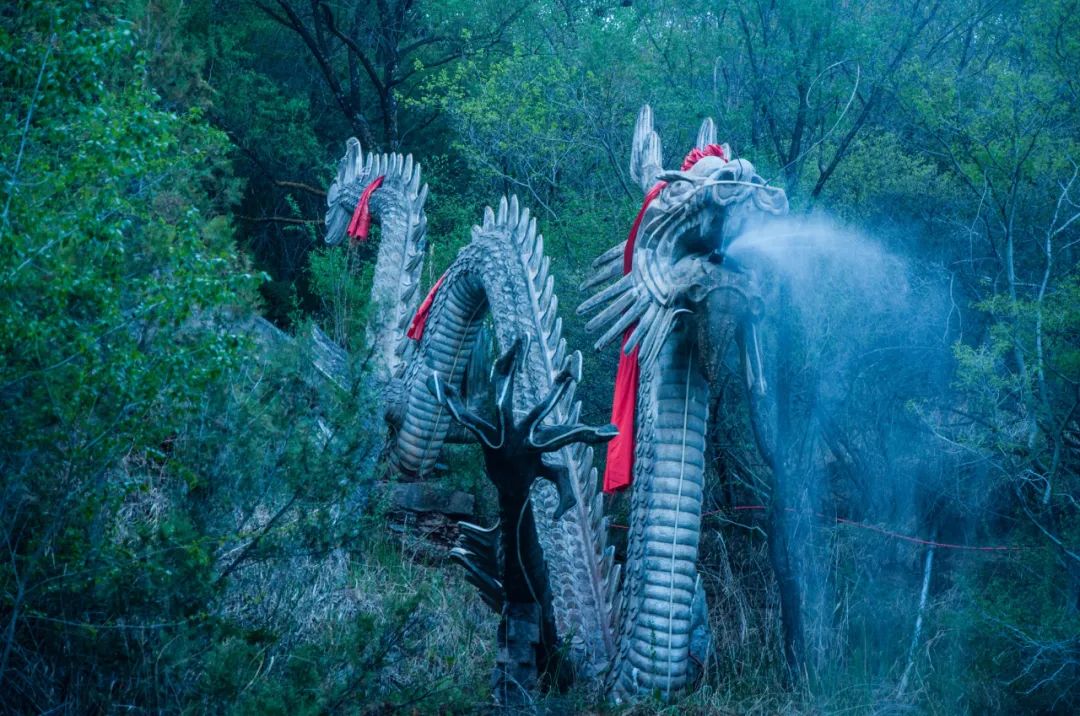 林荫蔽日,飞岩溢水,滴沥成泉,潺潺有声。龙与泉和、山与水映,清风阵阵、冰爽醉人。龙形古柏鳞爪森然,蜿蜒峭壁之上已逾千年。