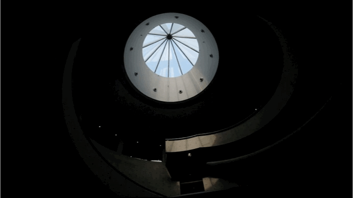 图/和美术馆公众号世界唯一的清水混凝土双螺旋楼梯是馆内最Heat的打卡点,阳光从天窗洒落至楼梯上,成为旅人拍照的最佳布光。
