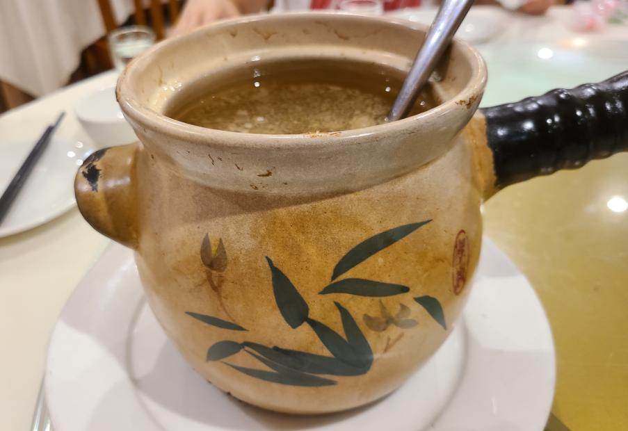 汤一上来,从砂锅的外表看,就是一副历经沧桑、很好吃的样子。更别提远远的已能闻到汤的香味。