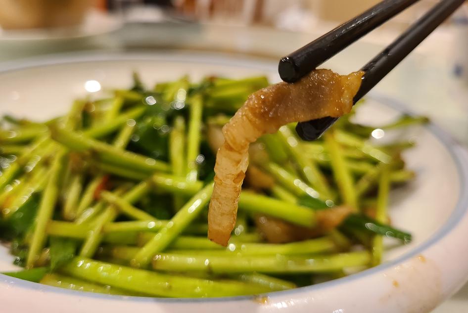 这道菜在某点评上并没怎么被提到,反而是想吃蔬菜的江西朋友翻看菜单时推荐的。原因很简单,这是江西人家里最常见的一道家常青菜。没想到这基本没人推荐的家常菜,却是今天餐桌上最快光盘的一道菜。