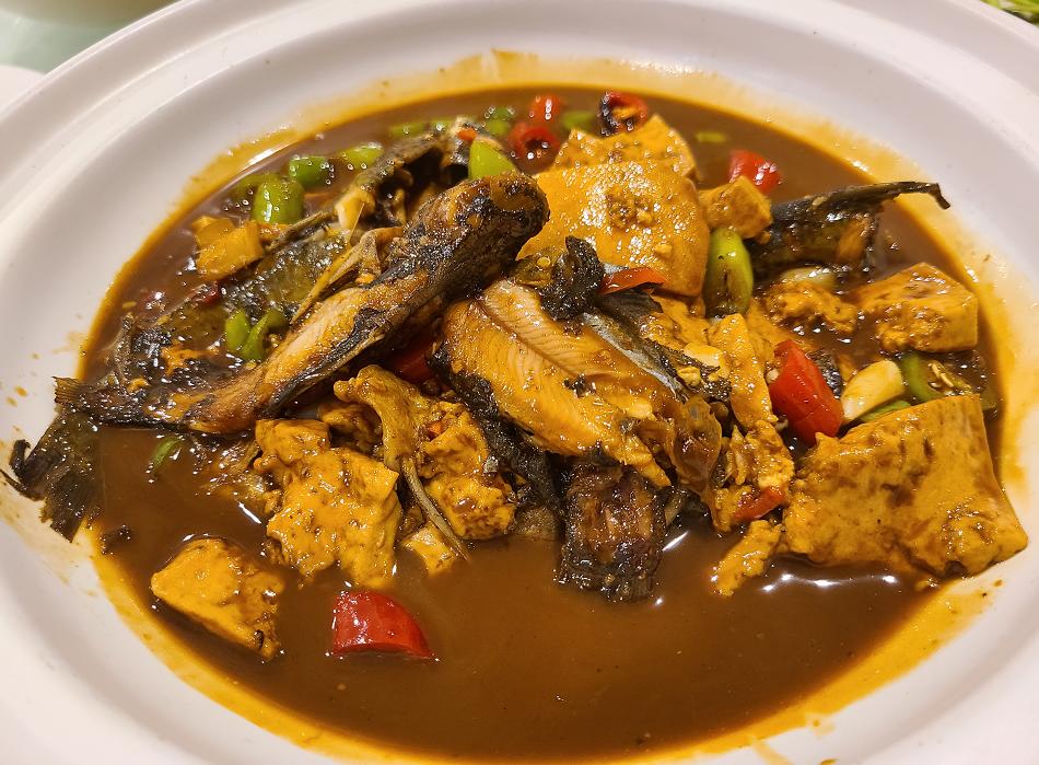 黄鸭头丨拍摄 呲呲在南昌饭馆,黄鸭头有单纯的黄鸭头和黄鸭头炖豆腐两种选择,那我们当然要选择食材更多的炖豆腐款了。这道菜口味非常丰富,咸辣中带着一点点甜,青红椒配着鱼和豆腐,鱼非常嫩而豆腐也很入味。若这是在家中做出的家常菜,可以算得上惊艳,但到了餐馆,算上各种性价比之类的,就只能算得上中规中矩了。